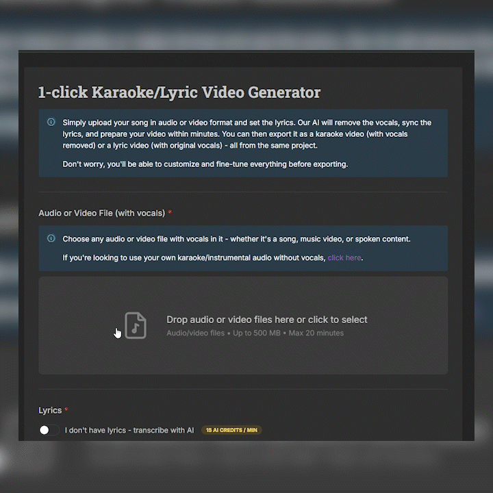 Check the box labeled "I don't have lyrics - transcribe with AI."